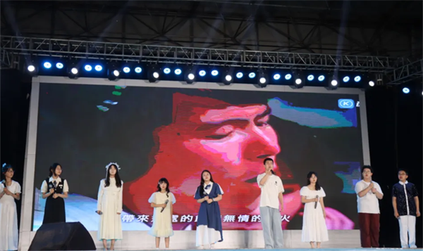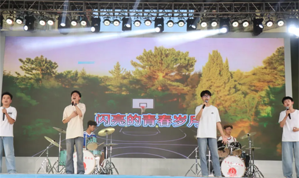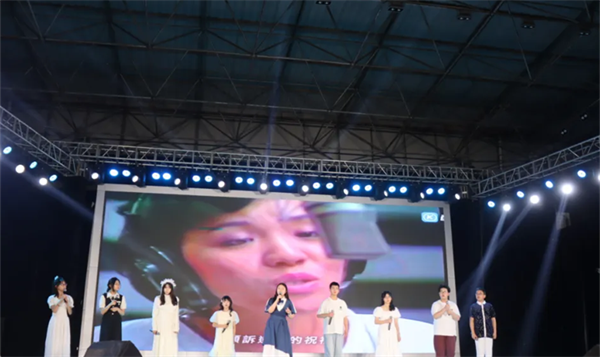 舞台灯光如星河倾泻,晚风裹挟音符轻舞。在主持人热情洋溢的开场后,全体师生以嘹亮歌声齐唱校歌,唱响青春记忆。