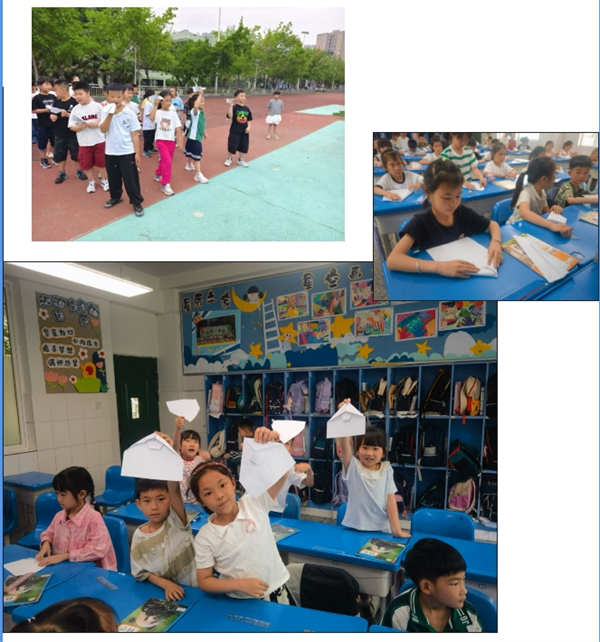 蓝天挑战赛:孩子们在操场进行飞行距离赛,高呼“我的飞机穿过云层啦!”
