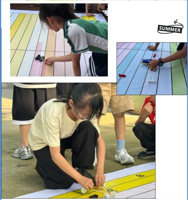 动力实验室:孩子们利用纸板、塑料瓶、吸管、轮子等材料,设计并制作出了一辆辆独特的小车。
