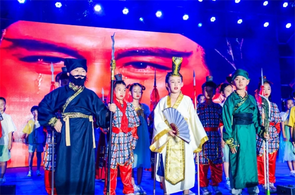 华夏千古韵悠长,星汉朝代歌飞扬。三年级学生身着汉唐服饰吟唱《星汉朝代歌》,历史古韵化作朗朗旋律,萦绕在德外夜空。