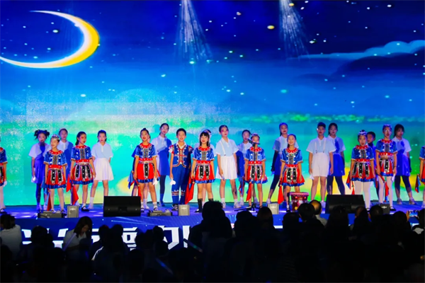 童年的歌曲像妈妈的拥抱,化作夏夜微风,与我们抱了个满怀。四年级的孩子们用清脆的童声把现场关注的回忆带到了童年时刻。