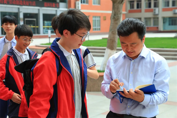 活动中,校领导与学子们亲切交流,询问备考情况,叮嘱劳逸结合。一句“学校永远是你们的后盾”,让学子们倍感安心。活动结束后,孩子们在课间纷纷找到贾校长签名留念。这份双向奔赴的温情,彰显了学校“以生为本”的教育理念,更凝聚起同心逐梦的磅礴力量。