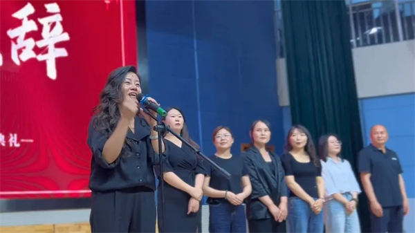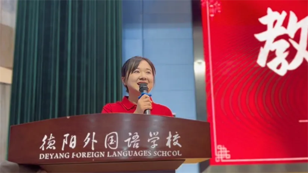 教师代表唐小英老师走到台前。她的话语温暖而有力量,饱含着对即将远行学子的殷殷嘱托与深深祝福。她勉励同学们带着德外赋予的品格与学识,勇敢追梦,永葆赤子之心,不忘来时路,常怀感恩情。她的发言,是临行前的叮咛,更是母校最深沉的爱与期许。