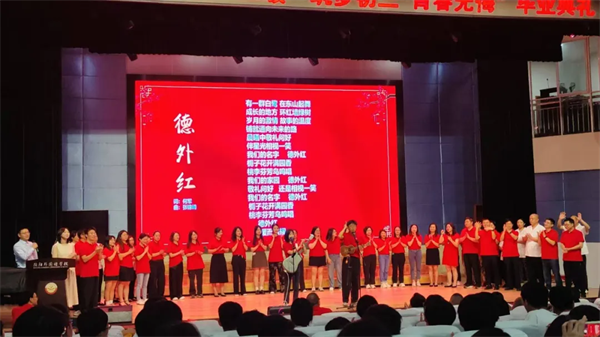 在熟悉的校歌《德外红》激昂旋律中,典礼落下帷幕。那抹鲜艳的红,早已烙印在每个德外学子的血脉,成为生命最厚重的底色。