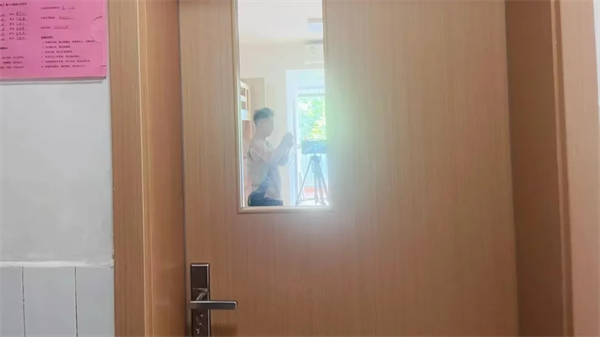 最后,为保证检测的公正性和透明度,全体参会人员一同前往C栋公寓,先由家长代表随机抽取抽样寝室,然后一起观摩了抽样全过程。