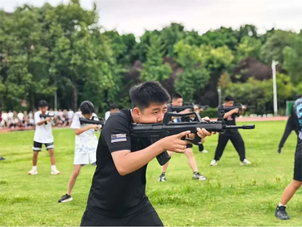 站军姿时,少年们的影子被拉得修长而坚定,汗水自额角无声滑落,却无人抬手——那是一种初长成的自律与坚持;转体训练中,“向左——转!”“向右——转!”的口令掷地有声,衣袂翻飞间,是青春与纪律初次交锋的声响。他们褪去假期的闲散,将稚气叠进迷彩服的每一条褶皱里,以绷直的膝盖和挺起的胸膛,写下与德外校园的第一份誓言。