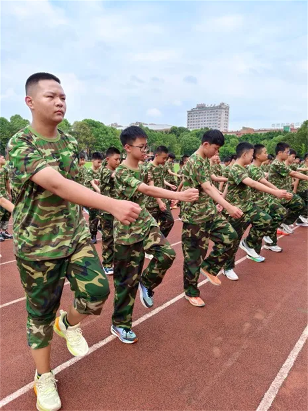 红色跑道与烈日交织,往日穿梭的“校服身影”暂被一片军绿取代。他们迎着光,步伐整齐,口号清亮,声震层云,连天公也似为之动容——将雨水化作汗珠,洒落在训练场,也烙印在日渐强壮的身体里。