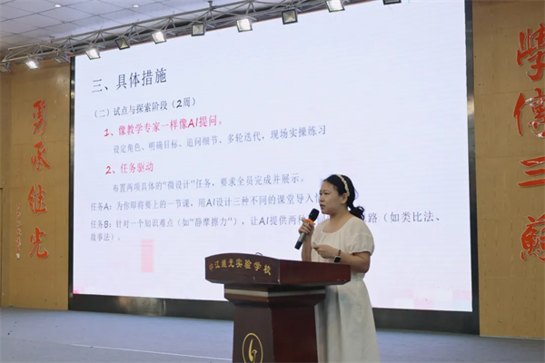 围绕“AI赋能教学”以及“如何实现教师AI授课技能过关”,各教研组开展了深入讨论。初中文综、小学高段语文等组别分享了前期探索中的实操经验,呈现了多份以学生为中心、与学科紧密结合的AI应用方案,并交流了围绕此项工作的本期教研工作计划。教师们从教材解读、教学设计到课堂实施,共探AI优化教学、激发兴趣之道。通过集体智慧的碰撞,进一步明确了AI在教育评价、个性化学习、资源开发中的应用路径,为新学期教学创新奠基。