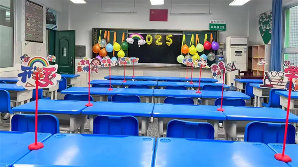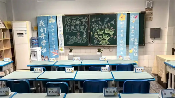 每一间教室都被老师们精心打扫与布置。窗明几净,桌椅整齐,黑板上绘满了色彩缤纷的欢迎板报和励志标语。“温馨雅室”的理念融入细节,绿植焕发勃勃生机,图书角书籍码放有序,等待着它们的小主人归来,为崭新的学习生活提供一个舒适、雅致的环境。