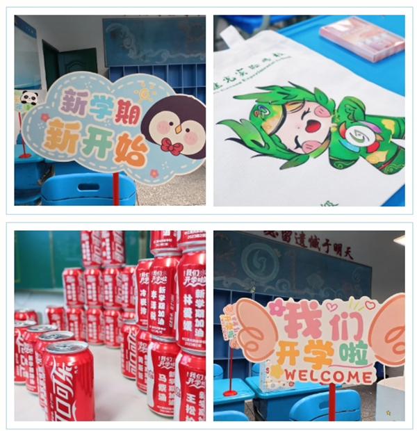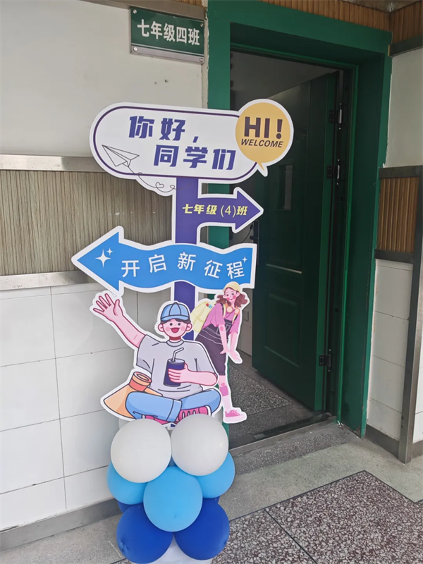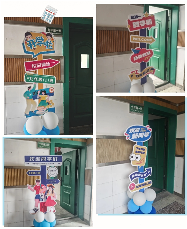 学校门口,“逐梦新学期,一起向未来”的蓝色未来之门,为校园增添了几分活力;两旁可爱的卡通人偶正向每一位同学挥手致意,送上新学期的第一声问候。这不仅仅是一个入口,更是一道通往新知识、新成长的“未来门”。