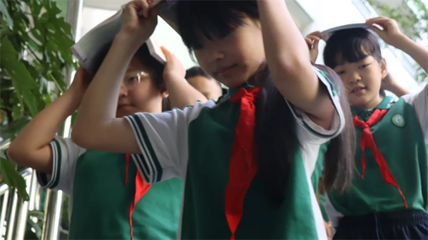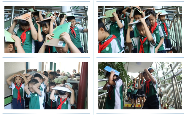 “请同学们迅速撤离!”随着指令的发出,同学们迅速从教室前、后门到走廊集中,成两路纵队沿疏散线路有序疏散,一边行进,一边用准备好的书包、书本护住头部。