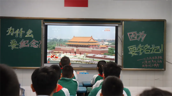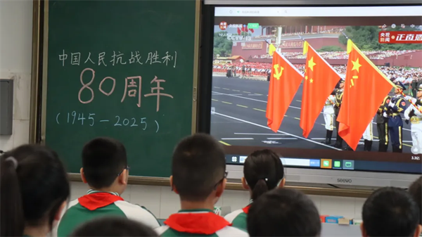 9月3日,纪念中国人民抗日战争暨世界反法西斯战争胜利80周年阅兵活动将在北京天安门广场举行。中江继光实验学校全体师生、员工分点集中,同步观看阅兵式直播。