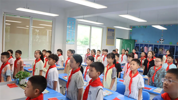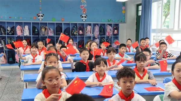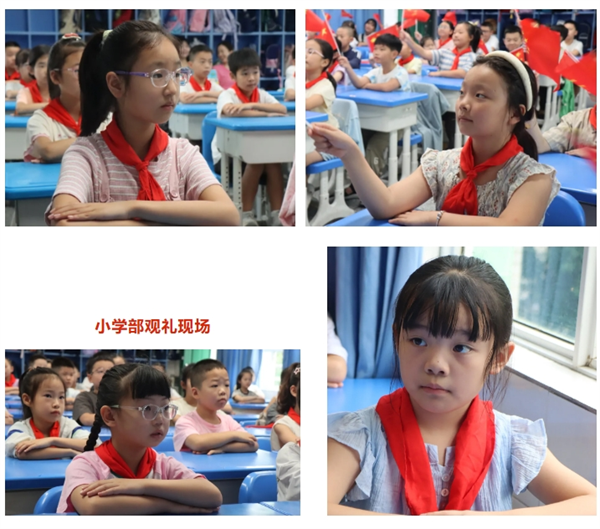 小学部的孩子们小手叠放,腰杆挺成一排排小树苗,乌溜溜的眼睛齐亮亮地粘在大屏上。教室里静得能听见心脏扑通扑通,像小鼓轻敲——那是他们与英雄方队同频的节奏,也是童年里一堂名叫“爱我中华”的庄严课程。